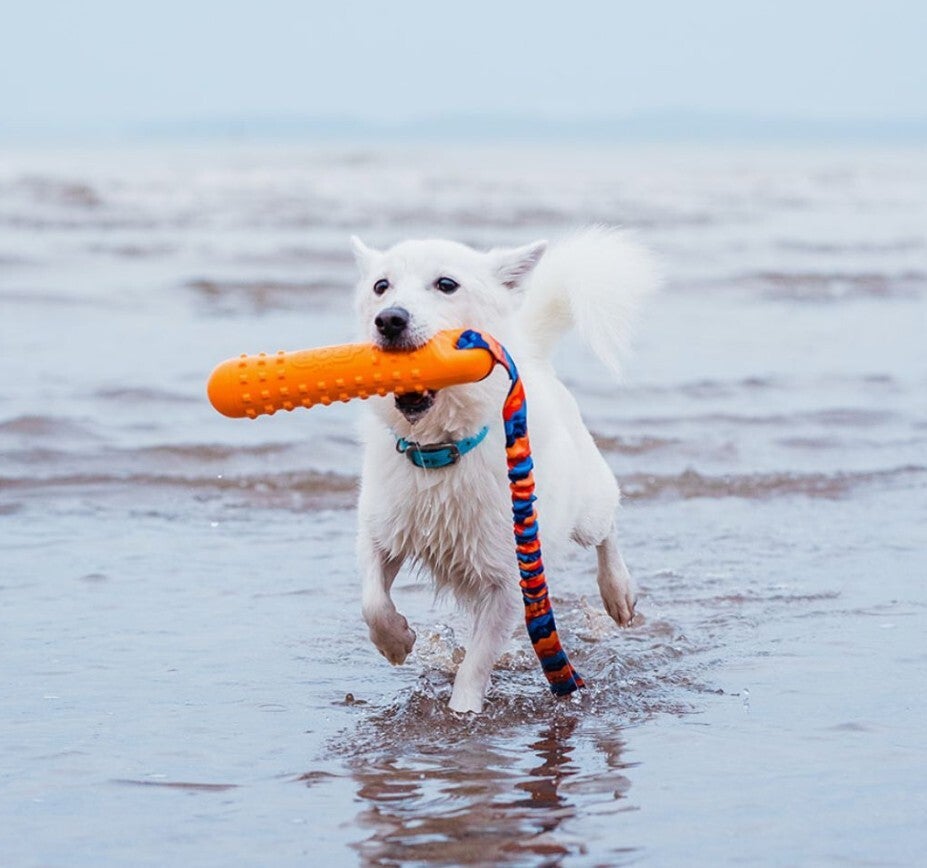Voor honden die graag apporteren, trekken en spetteren, doet dit drijvende hondenspeelgoed het allemaal!